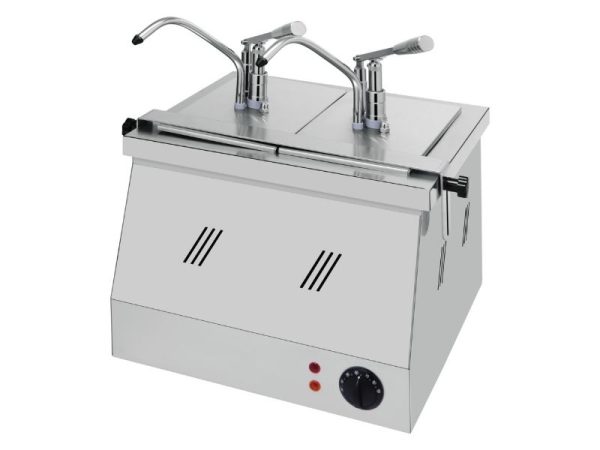 Bain Marie με Αντλία. Ανοξείδωτο μπαιν μαρί με 2 δοχεία αντλία και δοσομετρητή για σάλτσες, πραλίνα κ.α. Κατάλληλο και για πιο παχύρρευστα υλικά.