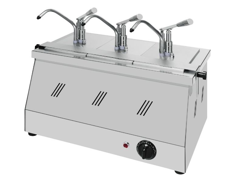 Ανοξείδωτο μπαιν μαρί με τριπλό δοχείο και δοσομετρητή με αντλία για σάλτσες, πραλίνα κ.α. Κατάλληλο και για πιο παχύρρευστα υλικά.