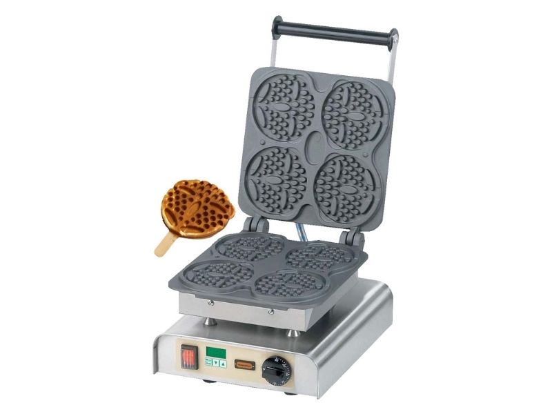 Ανοξείδωτη βαφλιέρα για βάφλες αρκουδάκι στο ξυλάκι. Μικρές σχετικά βάφλες σε παιδικό σχέδιο. Ιδανική για παιδότοπους.