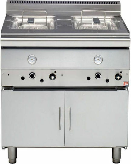 Διπλή φριτέζα αερίου με κλειστή βάση και δύο κάδους, χωρητικότητας 8 + 8 λίτρων λαδιού, με δύο θερμοστάτες και δύο θερμόμετρα