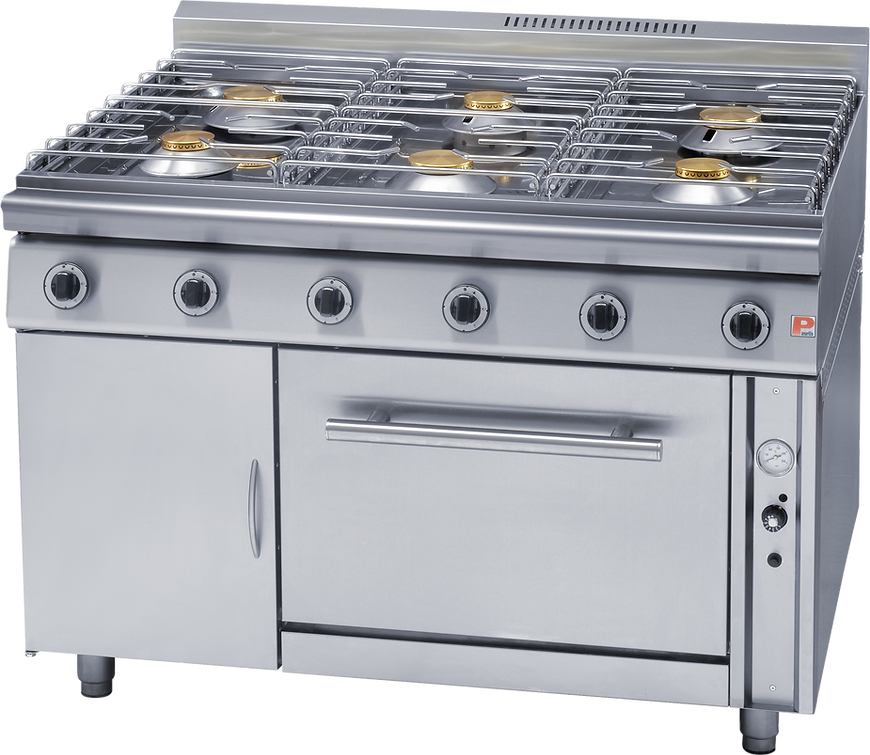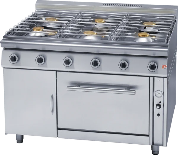 Κουζίνα φυσικού αερίου / υγραερίου 6 καυστήρων με φούρνο 70 σειρών.