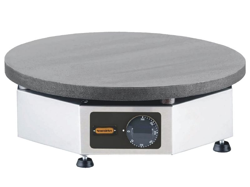 Συσκευή επαγγελματική κρέπες. Ηλεκτρική κρεπιέρα με την εγγύηση ποιότητας από τη Neumaerker. Διακρίνεται για τις πλάκες ψησίματος από ειδικό βαρύ μαντέμι. Κρεπιέρα για βαριά επαγγελματική και πολύωρη χρήση. Μικρή βάση κατάλληλη για να χωνευτεί σε πάγκο εργασίας