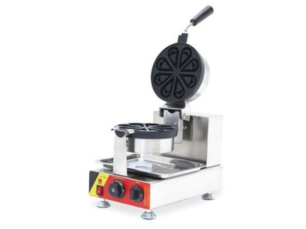 Βαφλιέρα για βάφλα δάκρυ. Περιστρεφόμενες πλάκες για σωστή κατανομή του μίγματος. Η βάφλα χωρίζεται και σε 8 κομμάτια σε σχήμα δάκρυ.